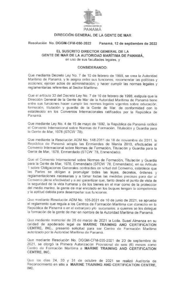 TCS AVANT - Republic of The Marshall Islands STCW LTR 2020