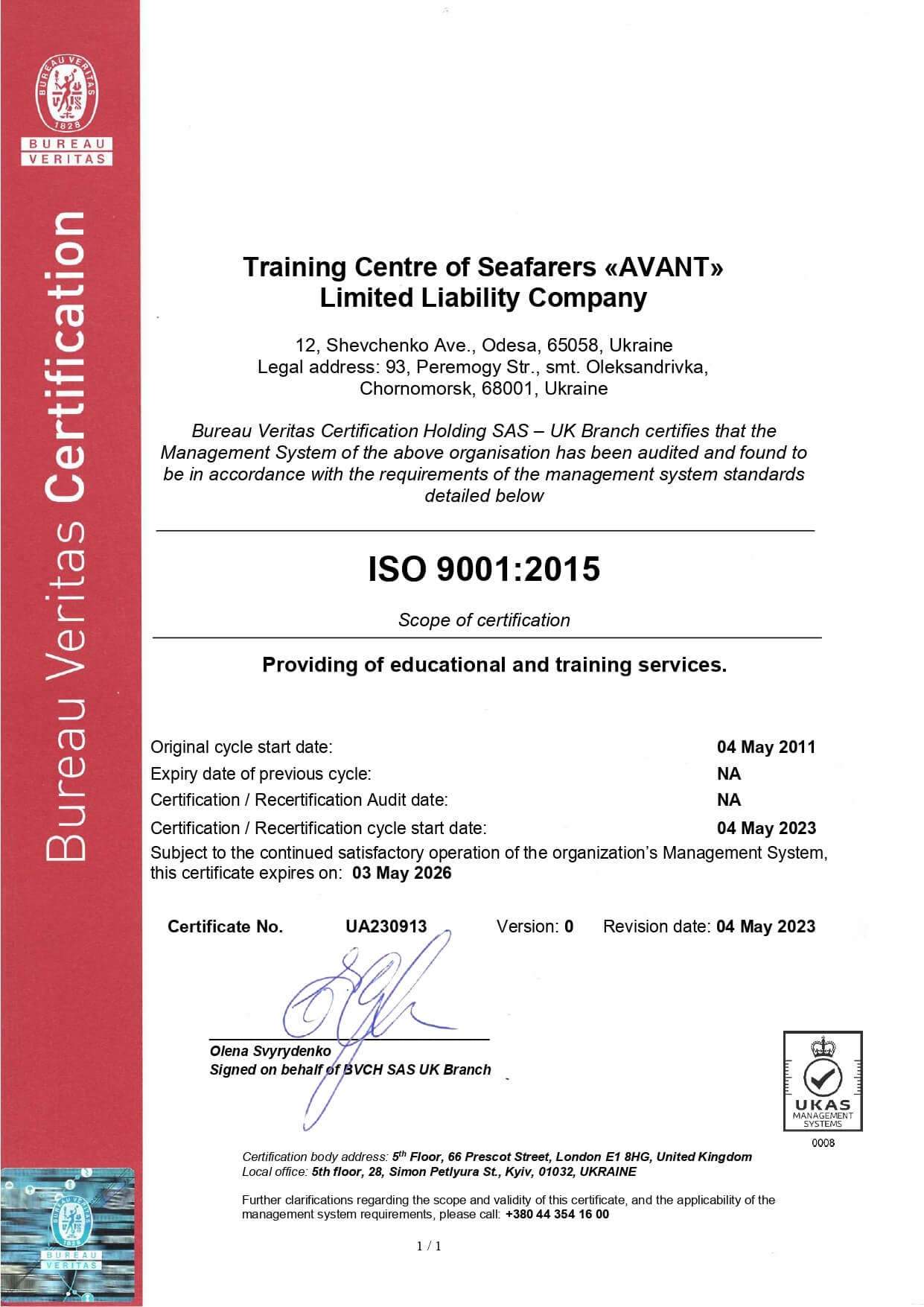 TCS AVANT - ISO Bureau Veritas License 2023
