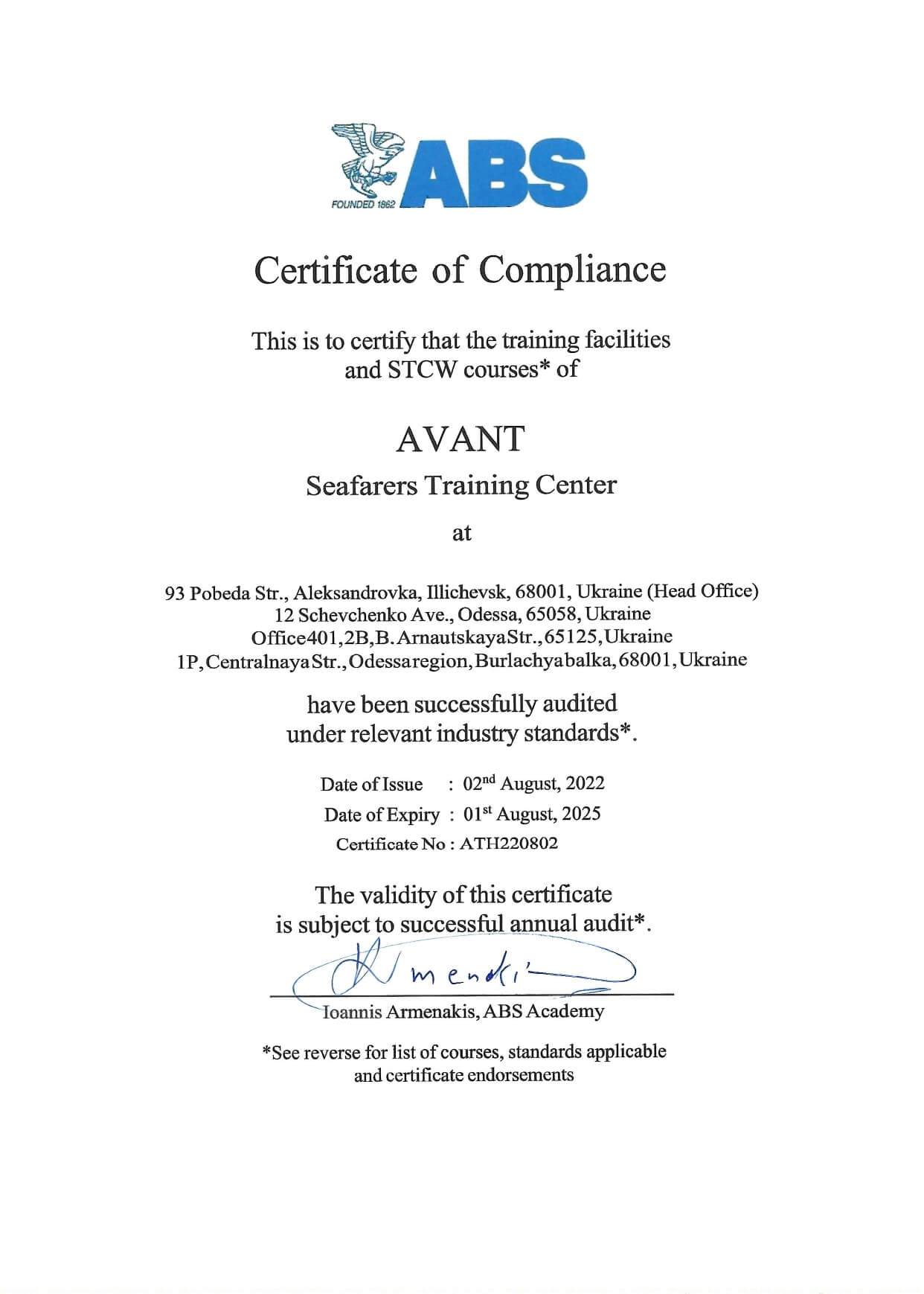 Certificate of Compliance 2025